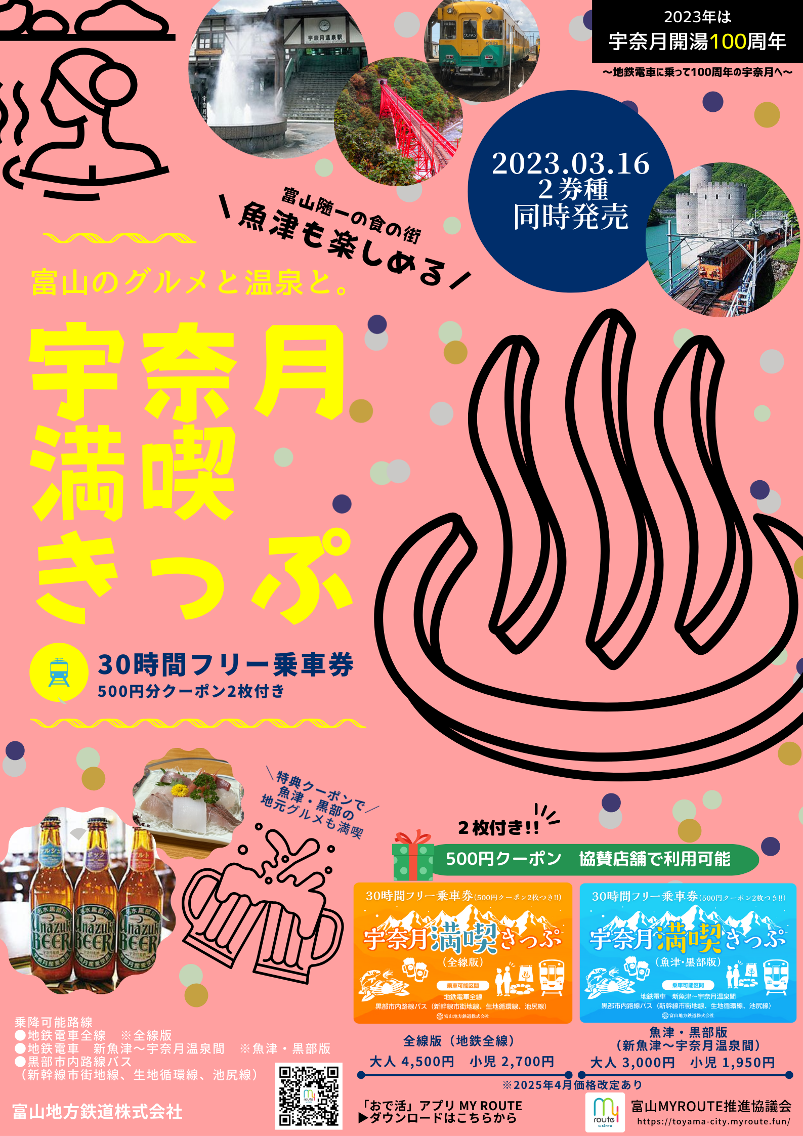 「my route」にて、宇奈月・黒部・魚津エリアをテーマにしたお得なデジタルチケット、
