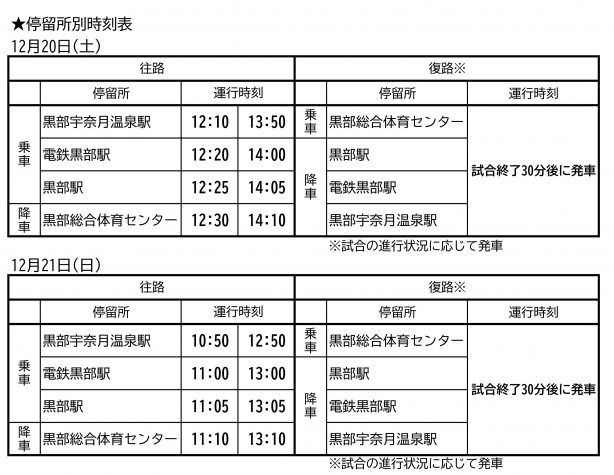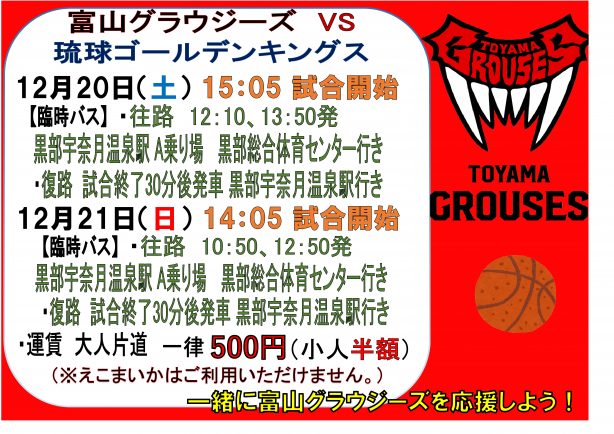 12月20日(土)・21日(日) 『富山グラウジーズ VS 琉球ゴールデンキングス』戦開催臨時バス運行