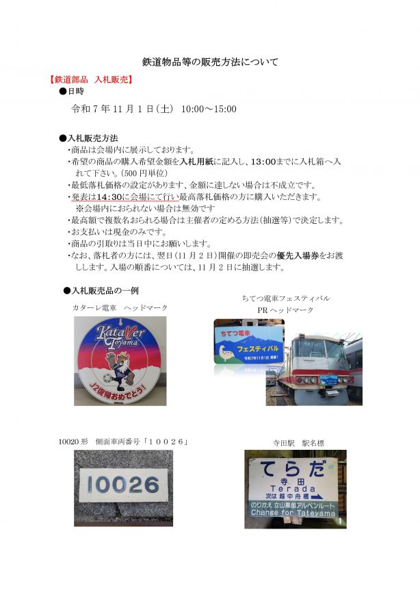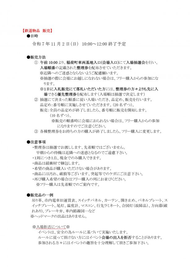 「ちてつ電車フェスティバル2025」鉄道部品等の販売について【詳細】