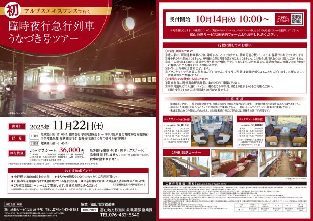 このたび、富山地方鉄道初の臨時夜行急行列車のツアーを開催いたします。