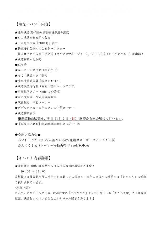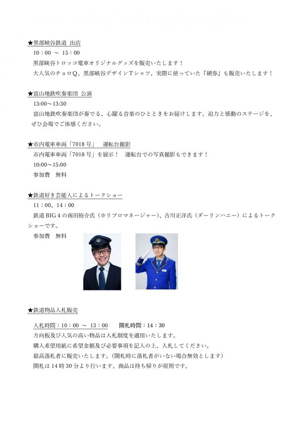 今年は遠州鉄道様、黒部峡谷鉄道様の出店もあります!
