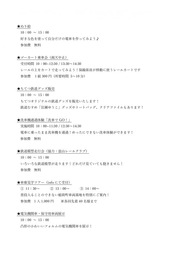 富山地方鉄道では、今年も「ちてつ電車フェスティバル」を開催します!