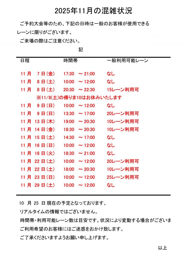 ボウリング混雑状況(11月)