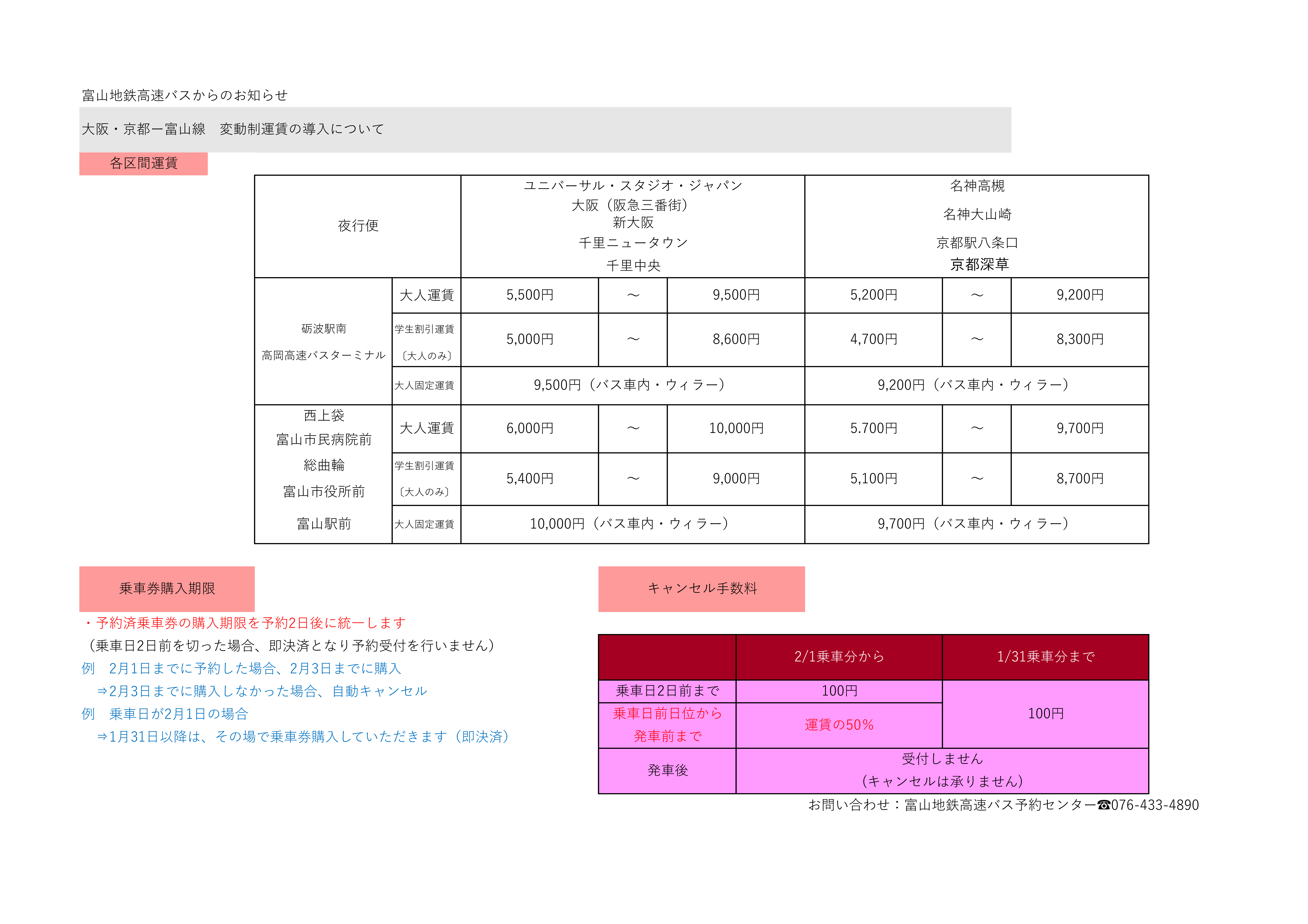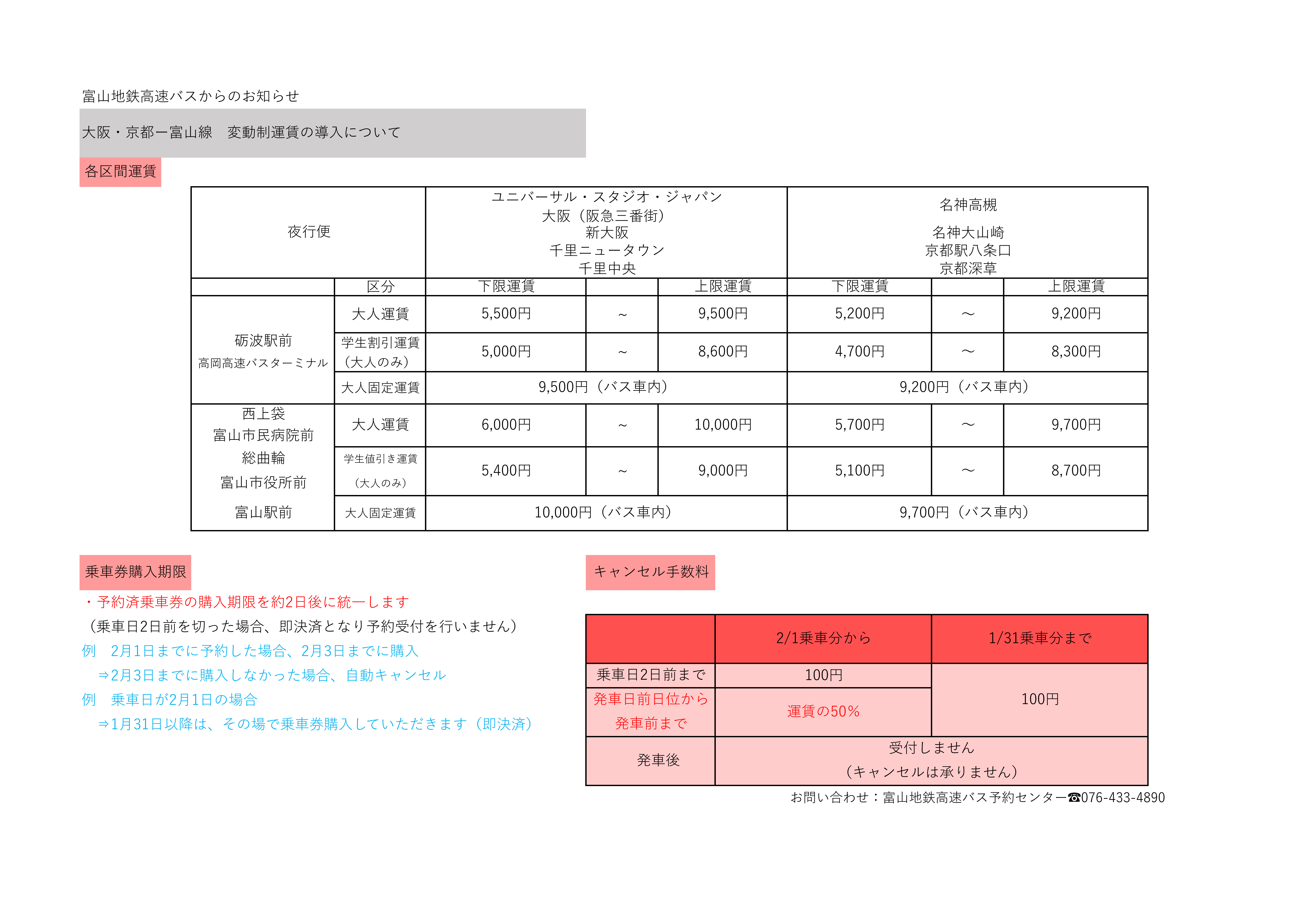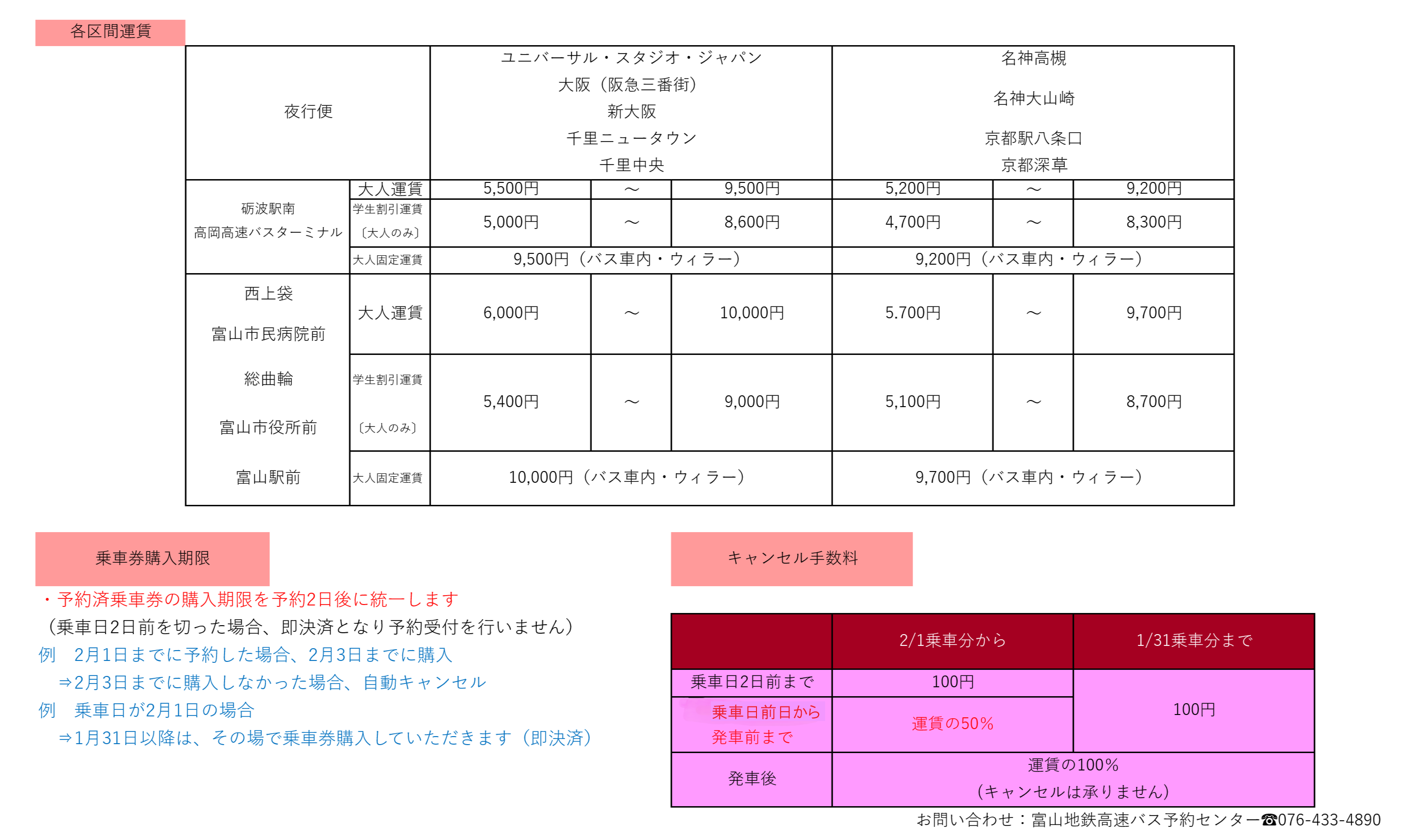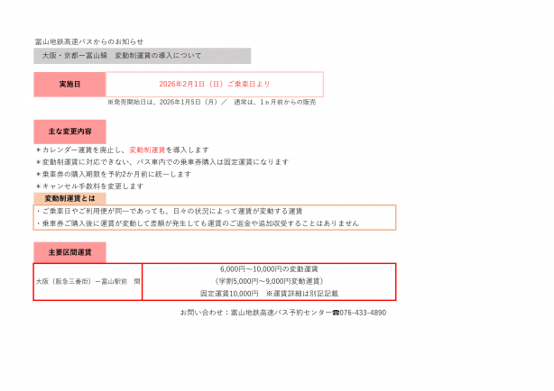 - 運賃・時刻等お問合せ先