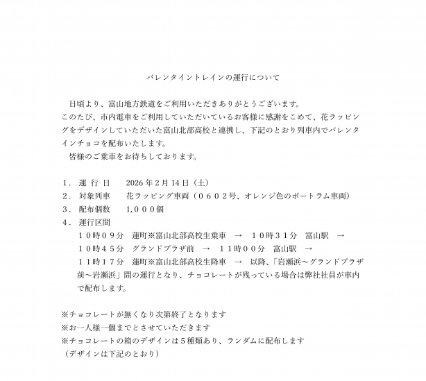 バレンタイントレインの運行について