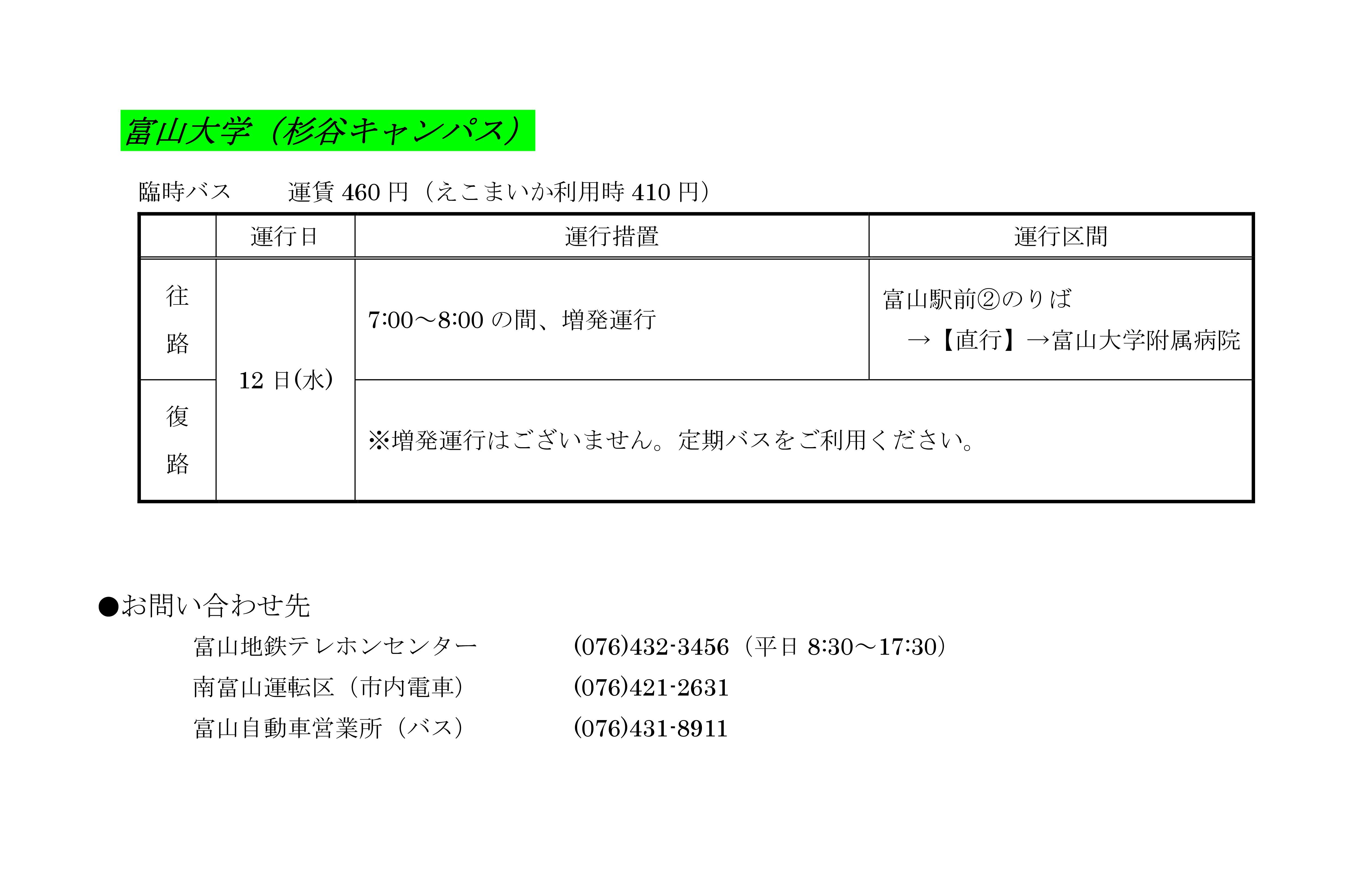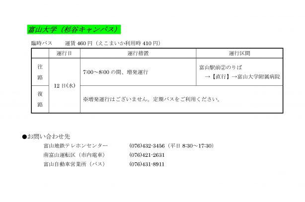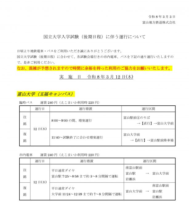 国立大学入学試験(後期)に伴う臨時運行について