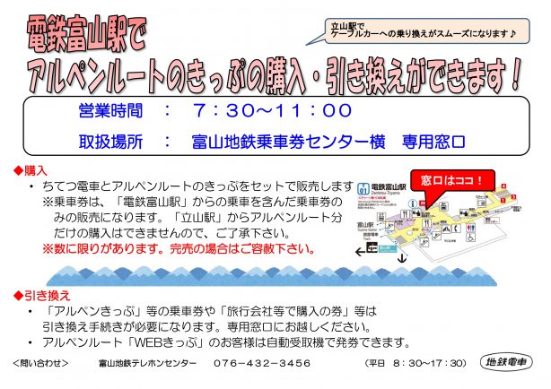 電鉄富山駅でアルペンルートきっぷの購入・引換えができます!