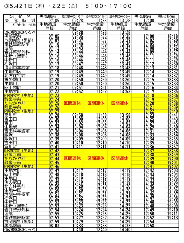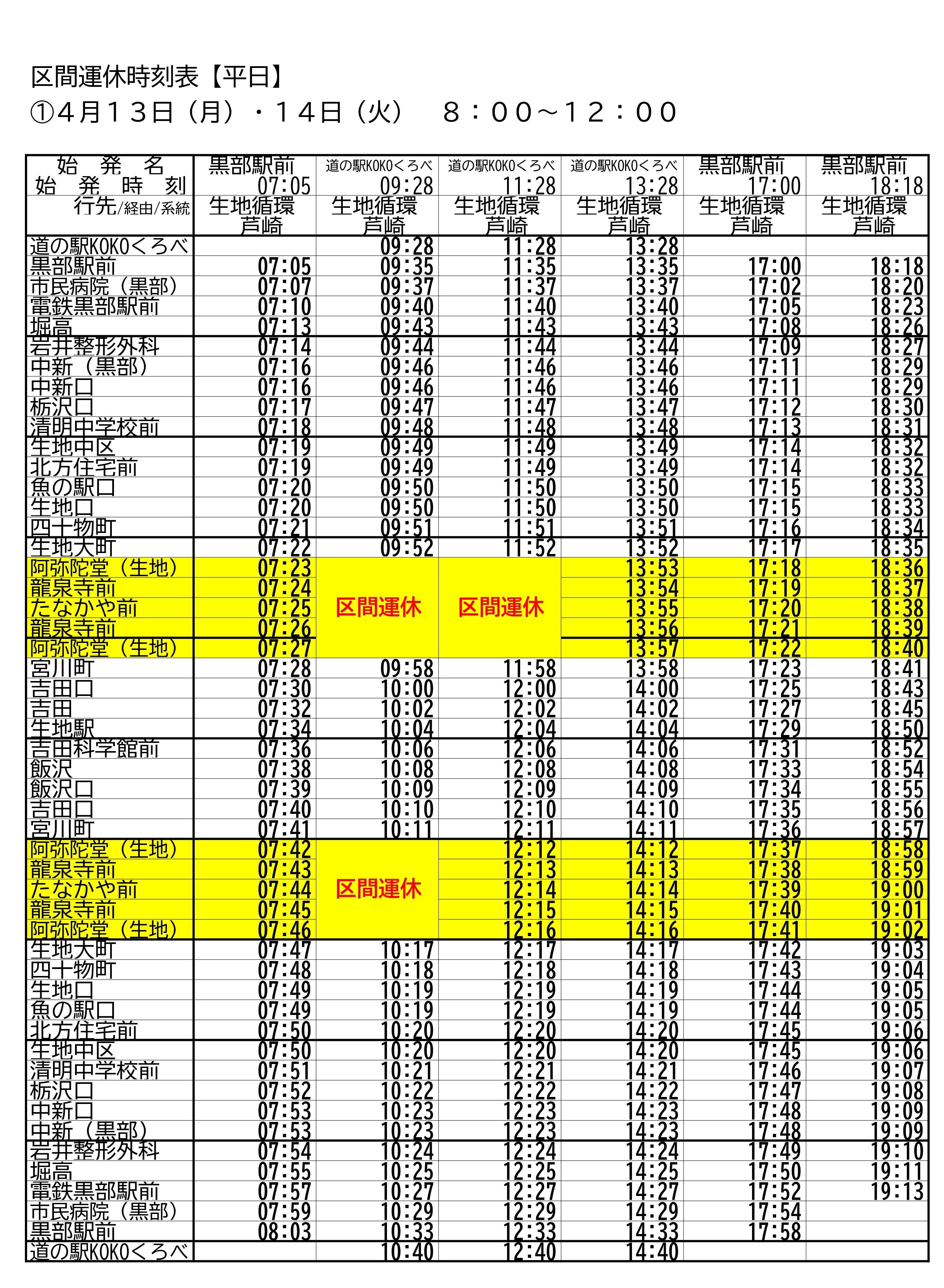 黒部市生地芦崎地内での工事(交通規制)に伴い、下記の通り経路変更いたします。