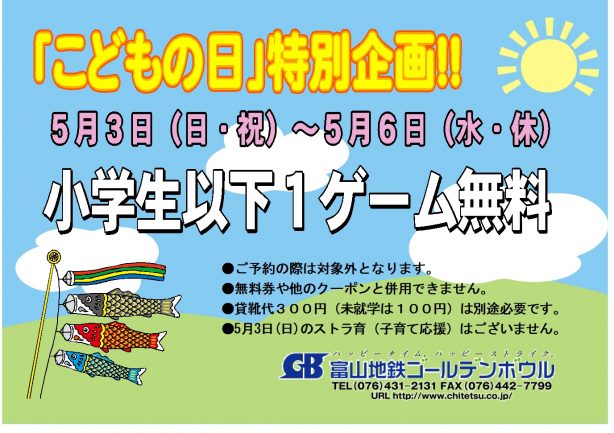 「こどもの日」特別企画5月3日(日・祝)~6日(水・休)の4日間
